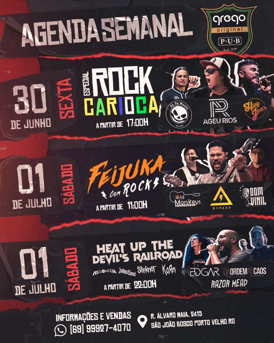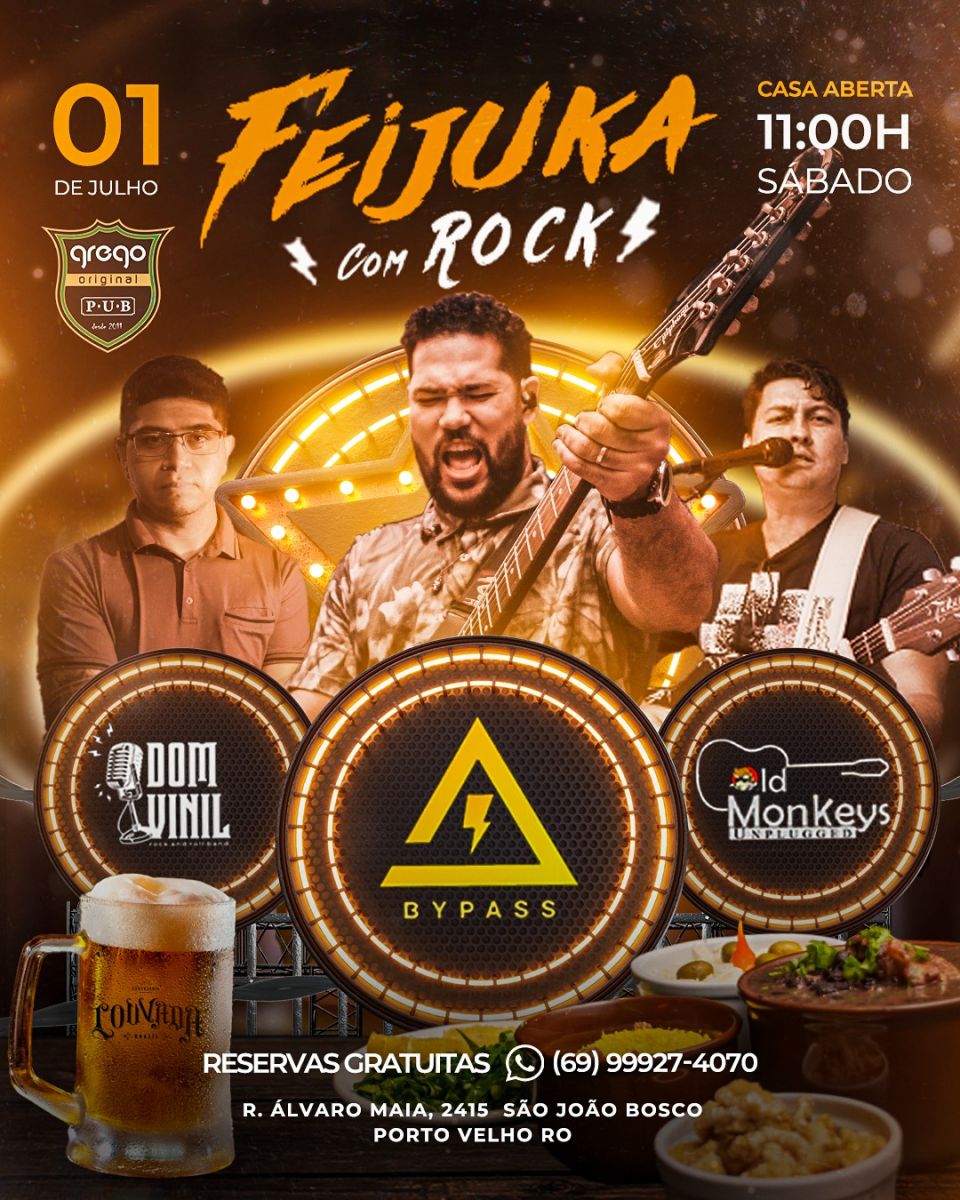 Para quem gosta de curtir uma balada no sábado à tarde, o evento feijuka com rock é uma boa pedida! Com muita comida boa e músicas excepcionais, casa aberta às 11h, no sábado (01/07).