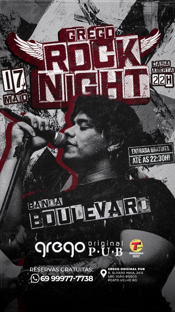 Pra você que curte sair sábado a noite, o rock Night do Grego é a opção ideal! Esse sábado (17) a partir das 22h, banda Boulevard com repertório mais pop rock do pedaço. Entrada free até 22:30