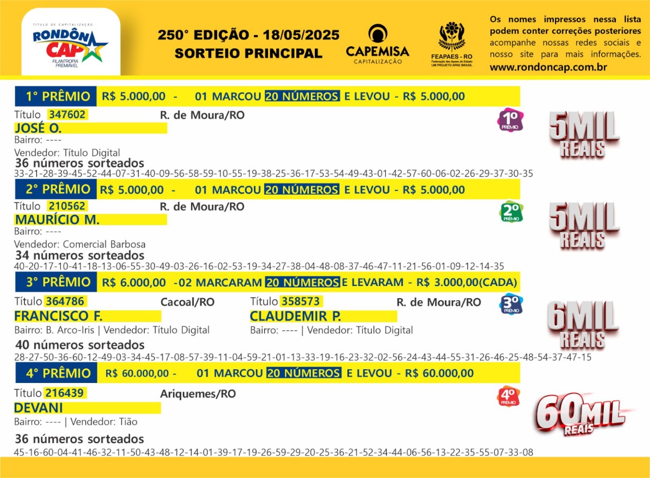 No mês de maio foram muitas premiações especiais no RondonCAP, e neste domingo não vai ser diferente