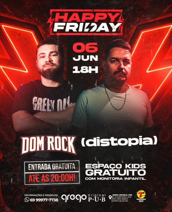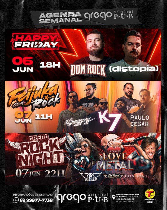 Para você que curte uma balada no fim de tarde, a fejuka com rock é uma excelente opção para o seu sábado. Casa aberta a partir das 11 horas, com delicioso almoço e logo após, a balada mais rock and roll de Porto Velho começa. É uma programação completa, você pode inclusive curtir em família, a casa conta com espaço kids com monitor infantil sem curso adicional nenhum.