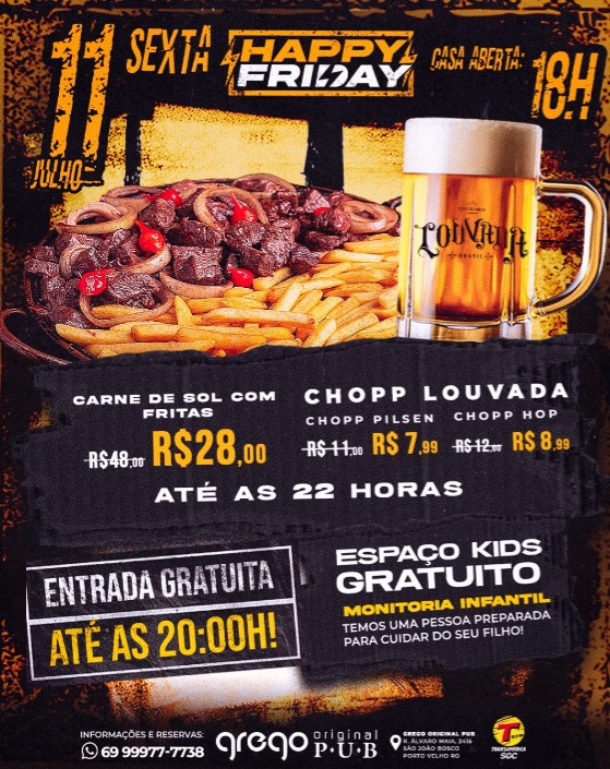 O Grego Original Pub fica localizado na avenida Senador Álvaro Maia, 2415, São João Bosco, Porto Velho, Rondônia.