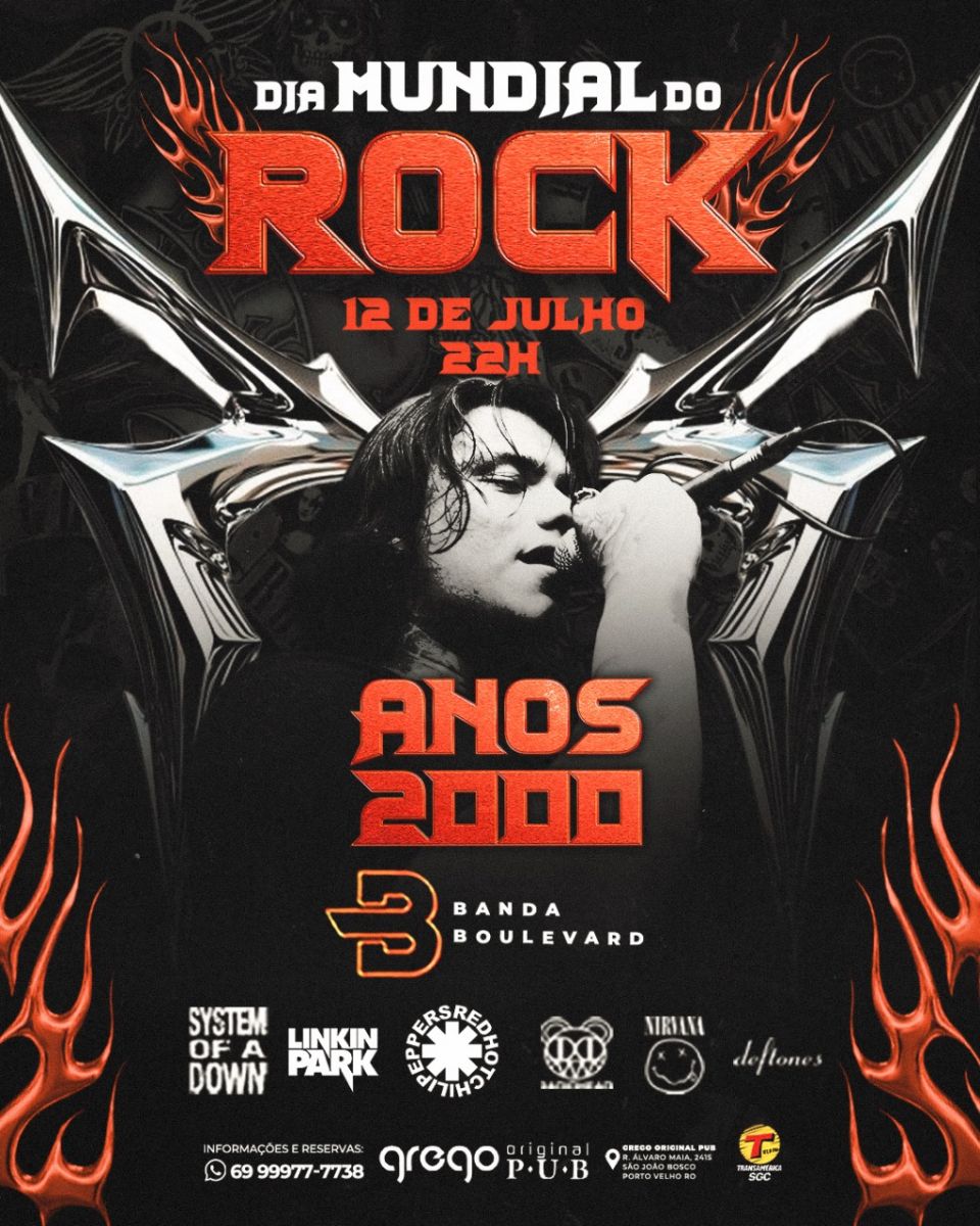 Vai rolar túnel do tempo com banda Old Blend e banda Boulevard trazendo dos clássicos a new metal no palco principal do Grego. Já no espaço lounge, teremos bandas autorais mandando um super som ( Benvindo ao Pacífico, Expresso Marciano, Amezma, Ecdise) e também banda vibe fazendo especial rock brasileiro. É pra celebrar em grande estilo!!!