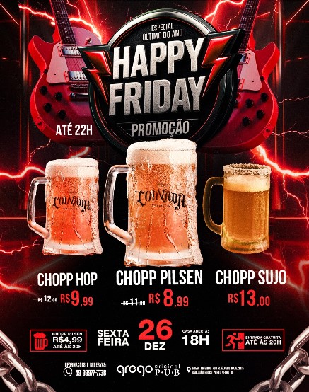 Promoções de chopp e petiscos até às 22h.