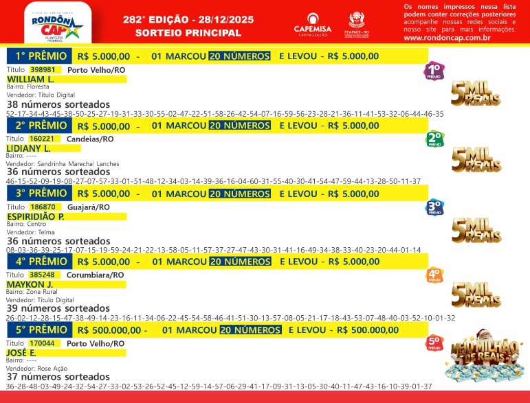RondonCAP Especial da Virada, é para iniciar 2026 com 150 mil reais na conta!