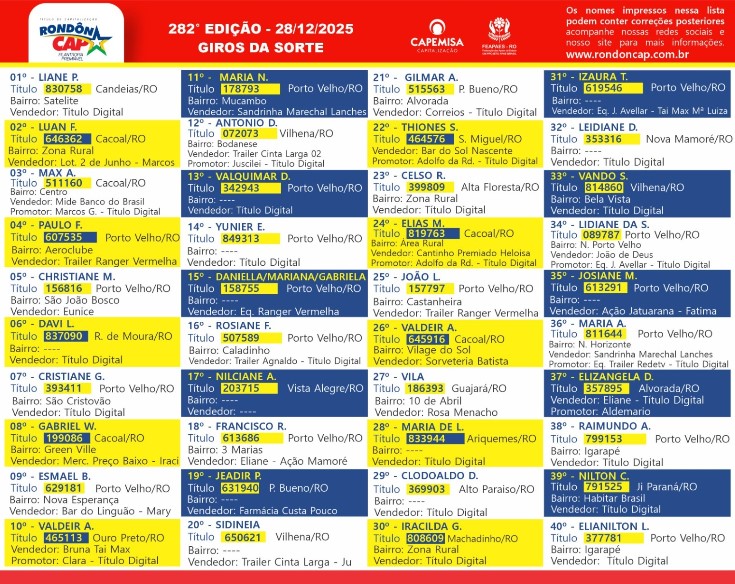 RondonCAP Especial da Virada, são 150 mil reais no 4 prêmio e o Titulo Dupla Chance por apenas 10 reais.