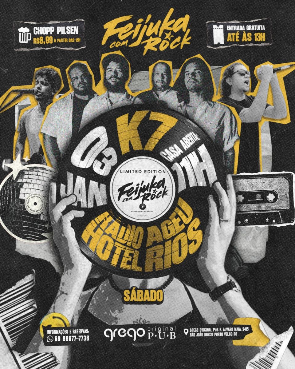 Para você que curte uma balada no fim de tarde, a fejuka com rock é uma excelente opção para o seu sábado. Casa aberta a partir das 11 horas, com delicioso almoço e logo após, a balada mais rock and roll de Porto Velho começa. É uma programação completa, você pode inclusive curtir em família, a casa conta com espaço kids com monitor infantil sem curso adicional nenhum.
