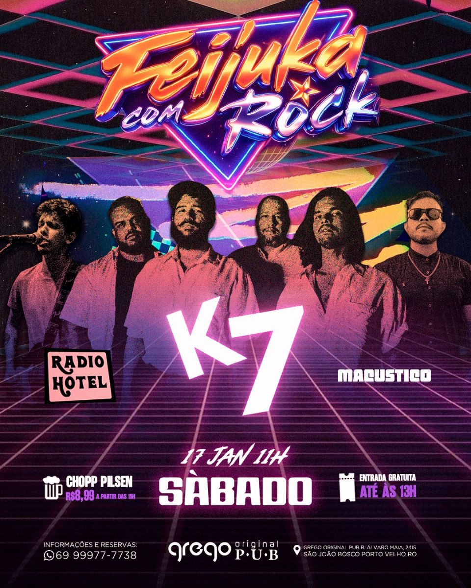 O sábado no Grego é sagrado! A partir das 11h, acontece a famosa Feijuka com Rock, unindo a melhor gastronomia com a energia do rock 'n' roll.