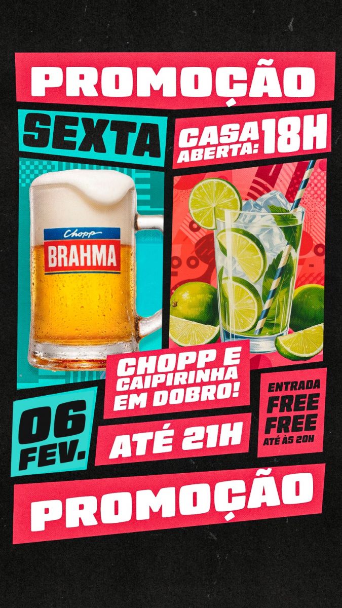 Chopp e Caipirinha em DOBRO até às 21h.