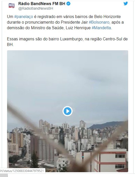 A demissão de Luiz Henrique Mandetta do Ministério da Saúde provocou panelaços nesta quinta-feira (16) em diferentes pontos do país.