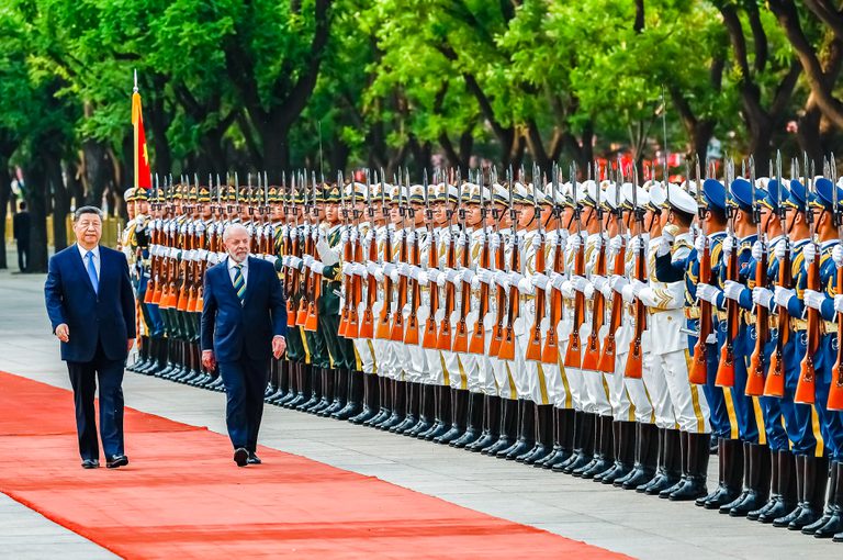 Presidentes Xi Jinping (China) e Lula da Silva (Brasil) durante solenidade do encontro entre os dois países para novaos acordos comerciais.