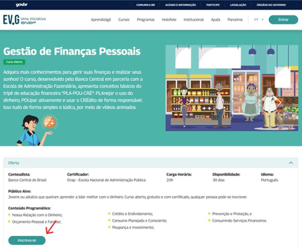 O curso foi desenvolvido pelo Banco Central do Brasil , em parceria com a Escola Nacional de Administração Pública (Enap),e está disponível diretamente na plataforma da Enap. A inscrição é gratuita e aberta a todos.