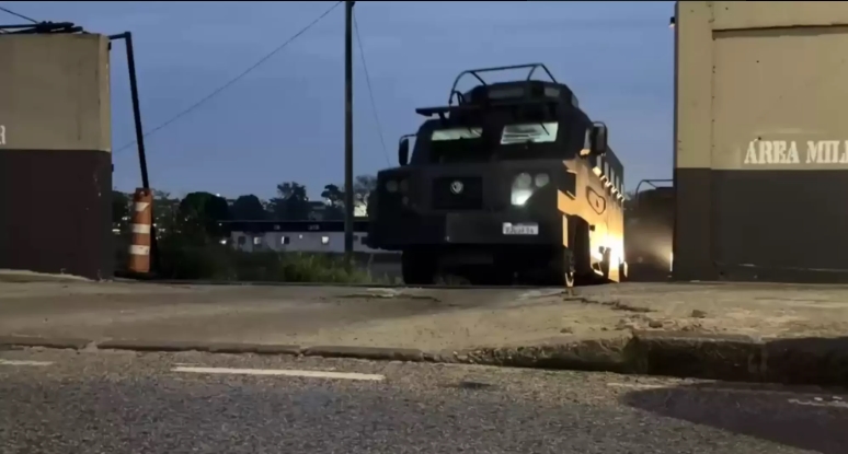 A ação contou com drones, helicópteros, 32 blindados terrestres e 12 veículos de demolição do Núcleo de Apoio às Operações Especiais da PM, além de ambulâncias do Grupamento de Salvamento e Resgate.