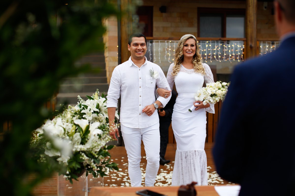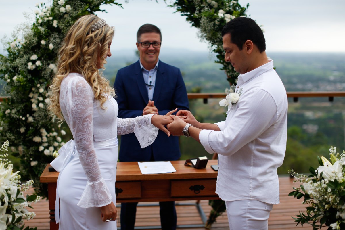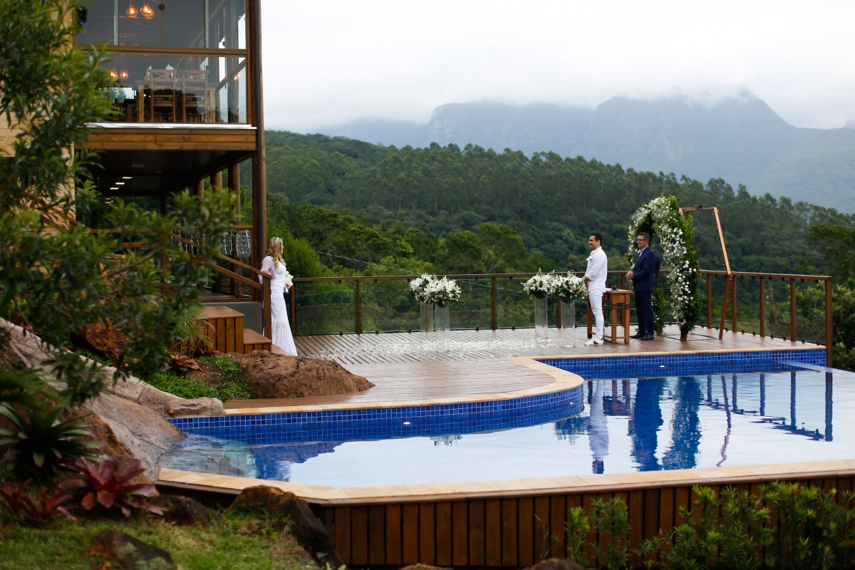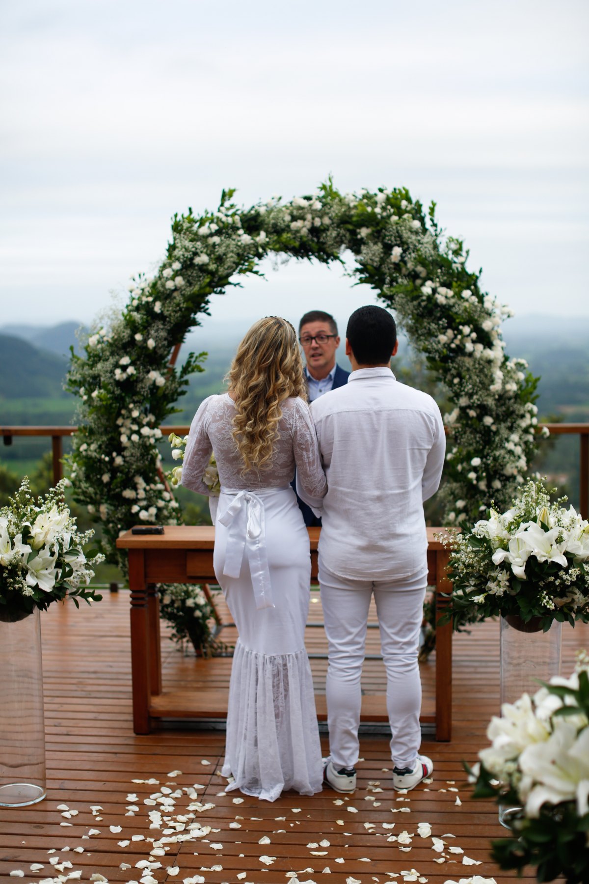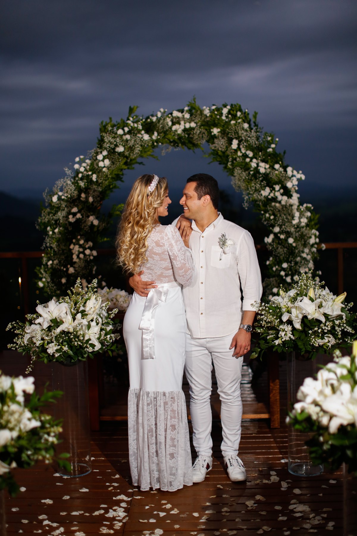 "Viemos até Santa Catarina onde celebramos nosso casamento sem convidados. Mudamos a data para o dia 21 de dezembro por causa da chuva que estava prevista para o dia 17. Como queríamos casar ao ar livre escolhemos a pousada Discovery Canyon. O celebrante do nosso casamento foi o incrível Luís Schumacher, que com os seus lindos e inteligentes textos contou nossa história de amor para registrarmos e eternizarmos em vídeo esse momento tão especial em nossas vidas", contou ela.