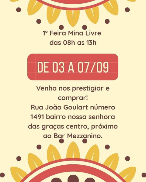 O Coletivo Mina Livre está realizando a 1ª Feira Mina Livre de Rondônia. O evento teve início na última segunda-feira(03), e vai até a próxima sexta-feira (07), na Rua João Goulart, bairro Nossa Senhora, próximo ao Bar Mezzanino, no centro de Porto Velho.