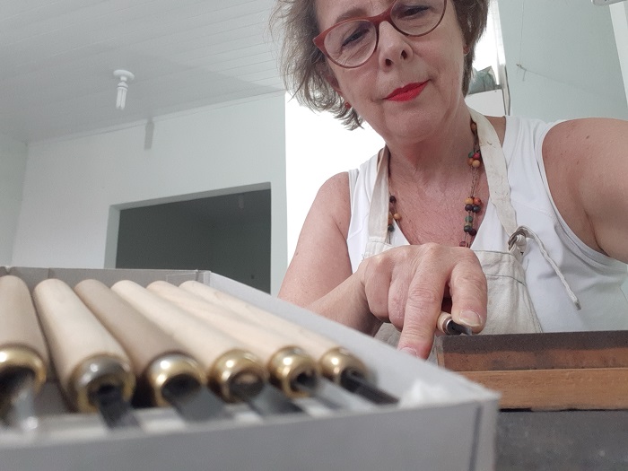 A exposição, segundo a artista, traz gravuras em metal, xilogravuras e desenhos à nanquim e lápis de cor. São 46 peças e uma vitrine com alguns instrumentos e ferramentas ilustrativos à técnica de gravura.