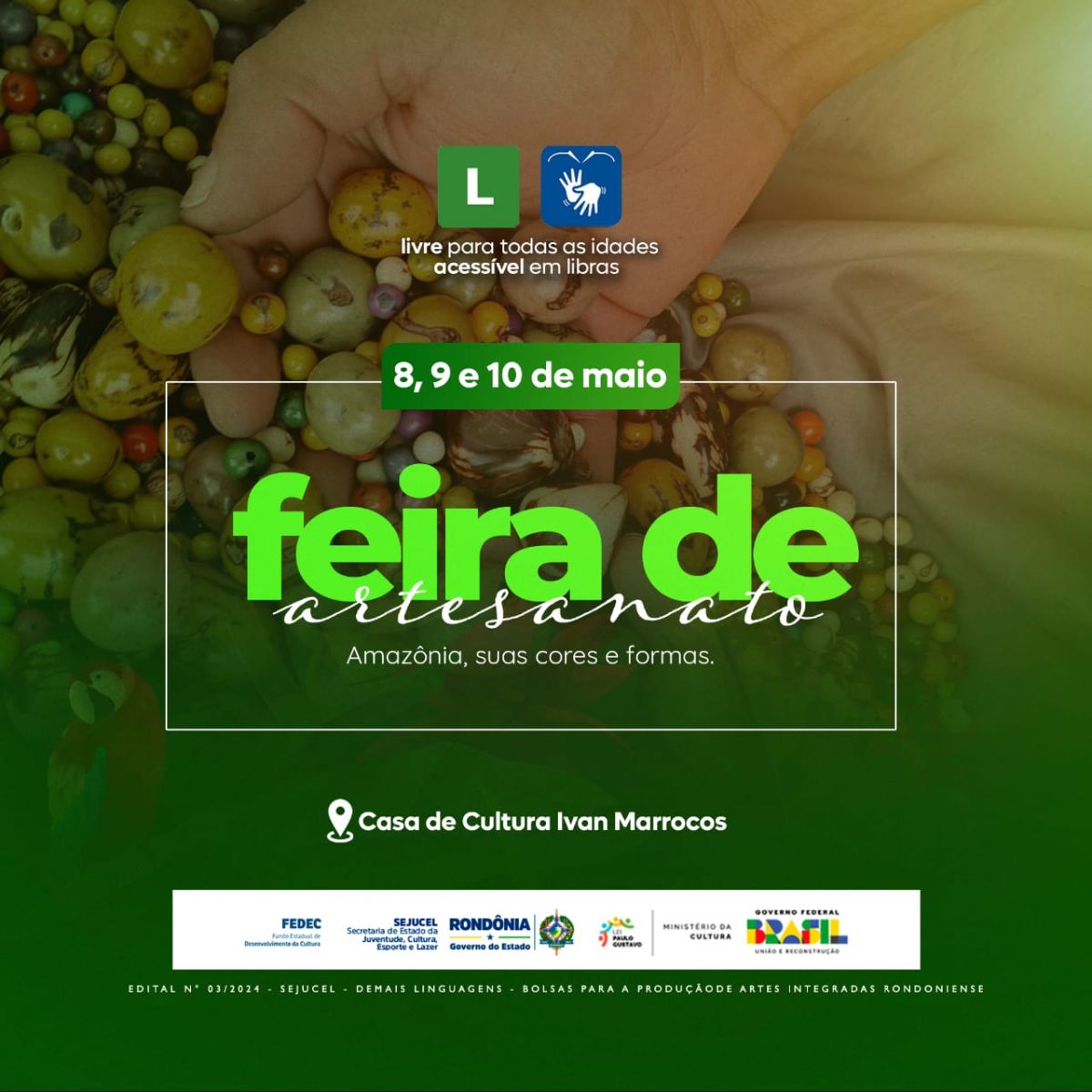 A feira está sendo executada com recursos da Lei Paulo Gustavo. - Edital LPG – Demais Linguagens –Bolsas para Produção de Artes Integradas Rondoniense – Lei Paulo Gustavo.