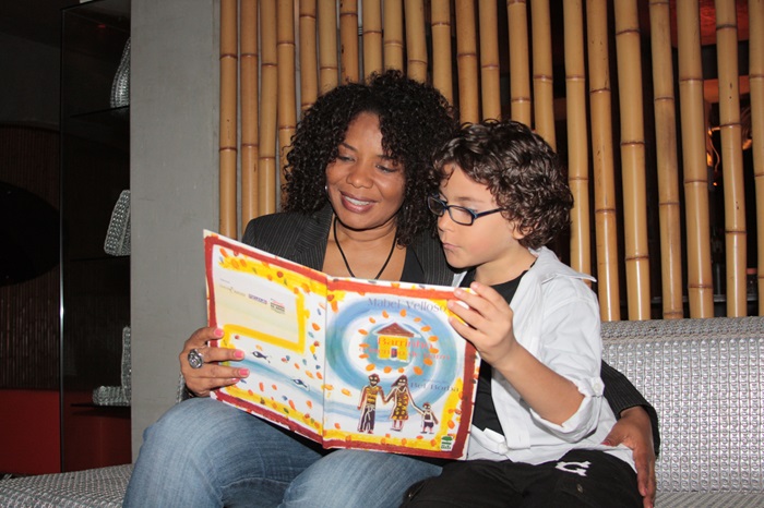 A atriz Lucinha Lins lendo para as crianças