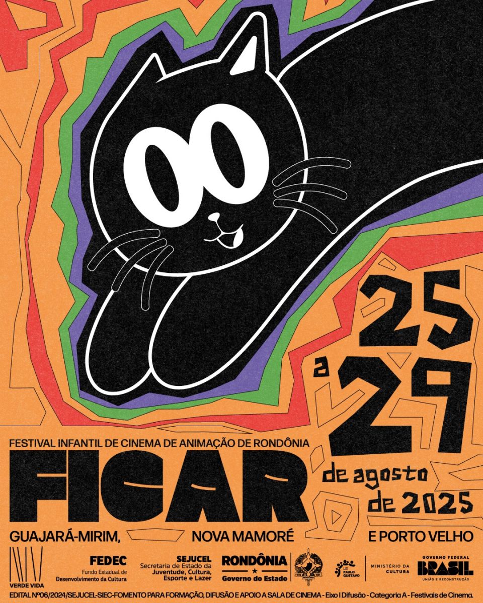FICAR – Festival Infantil de Cinema de Animação de Rondônia – 2ª Edição - Edital nº 06/2024 - SEJUCEL - SIEC - Fomento para Formação, Difusão e Apoio a sala de cinema - Eixo I - Difusão - Categoria A - Festivais de Cinema, com recursos da Lei Paulo Gustavo, com apoio do Governo do Estado de Rondônia, FEDEC, Ministério da Cultura e Governo Federal.
