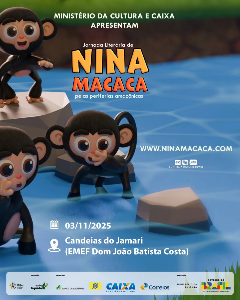 No dia 3 de novembro, a Jornada Literária de Nina Macaca pelas Periferias Amazônicas chega à cidade com muita imaginação, leitura e alegria para crianças e jovens.