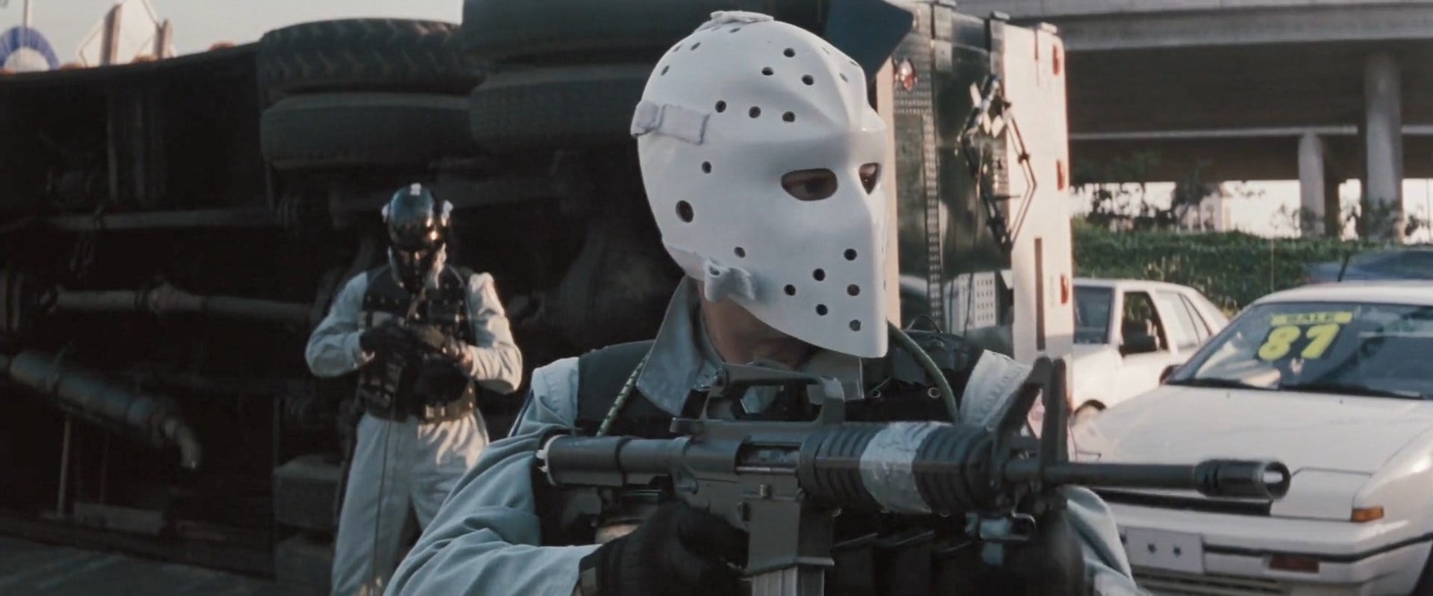 O outro ponto alto vem na terceira hora do filme, no terço final, logo após um assalto a banco, com o grupo de ladrões conduzindo pesadas bolsas recheadas de dinheiro para chegar a um carro de fuga. Porém, algo dá errado e tem início um confronto com os policiais liderados por Vincent no meio da rua, entre carros e pedestres, com tiros de fuzis e metralhadoras, em uma das perseguições mais absur-das já realizadas. São cenas violentas, de grande impacto visual, com correria, confronto direto e mui-tos, muitos tiros. Essa é considerada por muitos críticos como a melhor cena de tiroteio já feita pelo cinema. É sensacional, emocionante e com consequências imprevisíveis.