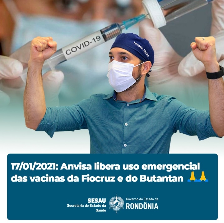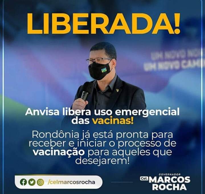 Horas depois foi a vez de Marcos Rocha, aparentemente menos entusiasmado que Máximo, aparecer em um banner em seu Facebook com legenda citando que a Anvisa havia liberado o uso emergencial das vacinas.