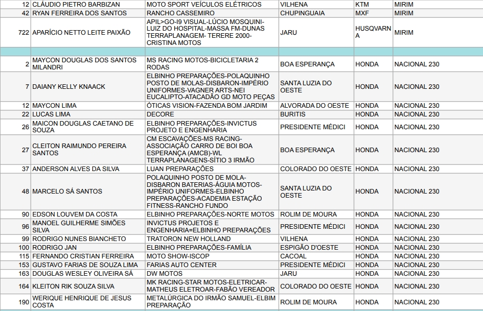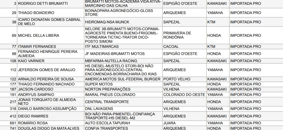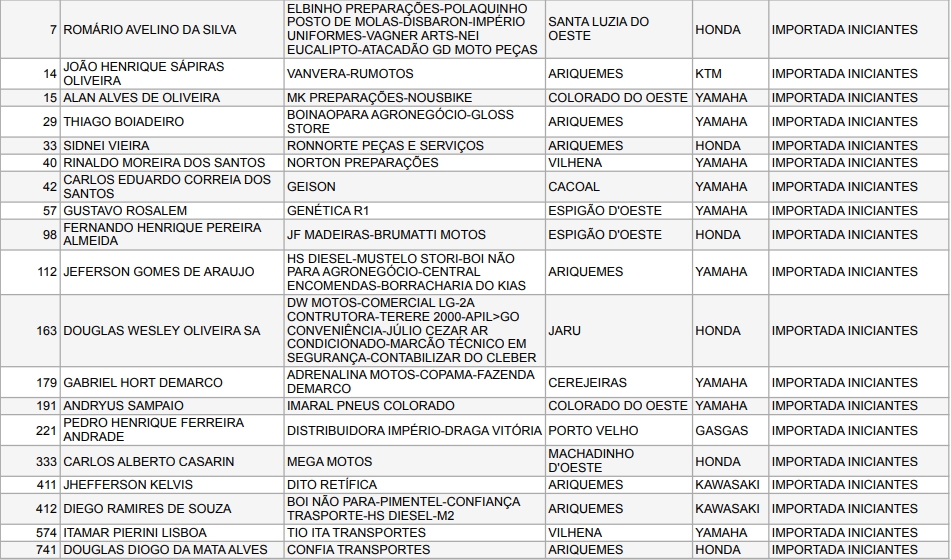 Confira abaixo os pilotos e as empresas que apoiam o Motocross de Rondônia: