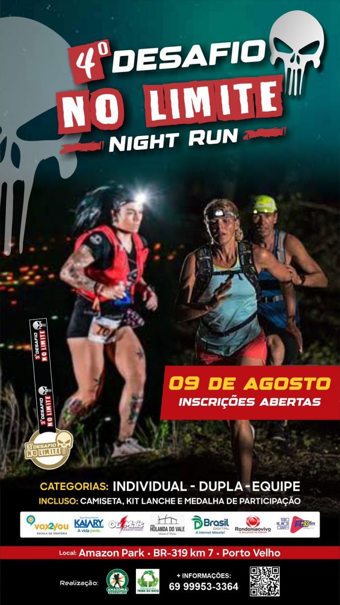 Aos praticantes de corrida em trilha o 4º Desafio no Limite Night Run está com inscrições abertas. O evento que é organizado pela Amazônia Adventure e Associação Cultural Tribo da Mata, acontecerá no dia (9), de agosto em Porto Velho.