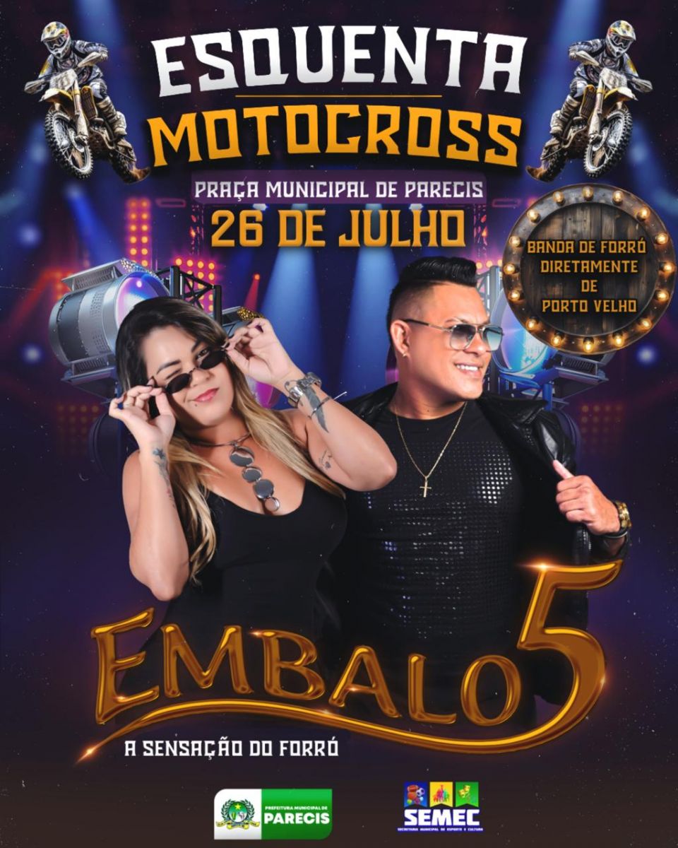O esquenta do evento irá contar com a banda de forró porto velhense Embalo5, no dia (26), a partir das 22:00hrs na Praça Municipal.