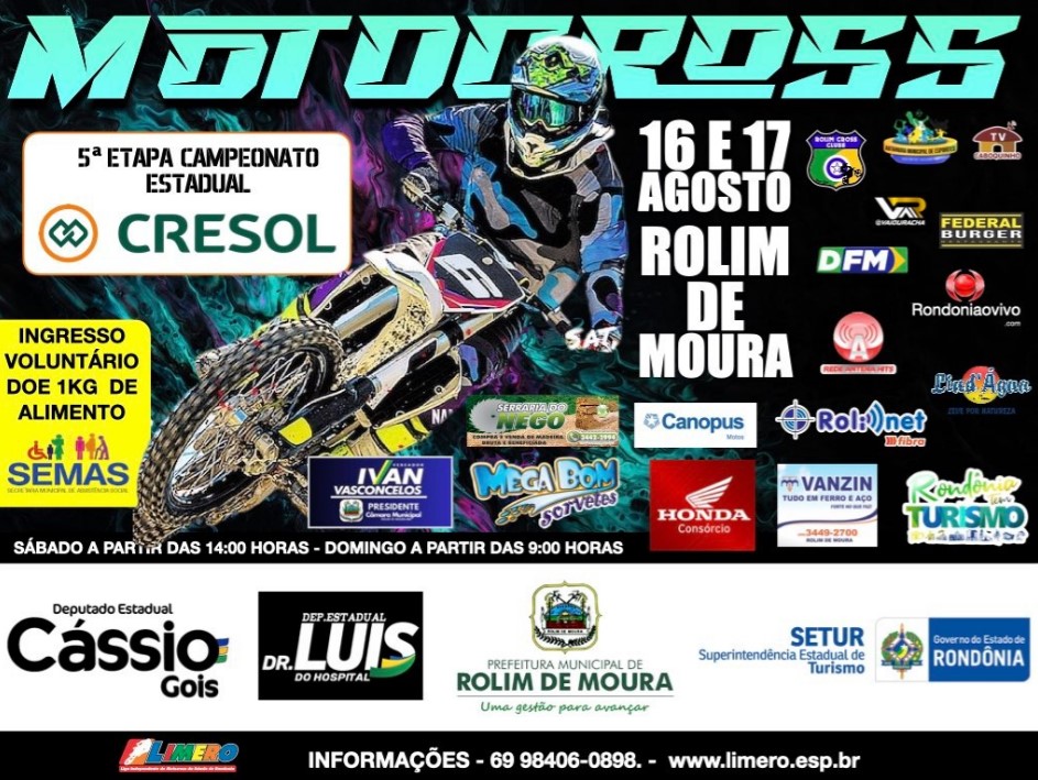 O evento é realizado pelo Governo de Rondônia, através da Superintendência Estadual de Turismo (SETUR), em parceria com a Liga Independente de Motocross do Estado de Rondônia (LIMERO), com apoio do deputado estadual Cássio Góes, do deputado estadual Dr. Luis do Hospital, vereador Ivan Vasconcelos, Prefeitura Municipal de Rolim de Moura, Rolim Cross Clube, Lind’Água, Federal Burguer, Mega Bom Sorvetes, Serraria do Nego, RoliNet, Rondônia Turismo, Canopus Motos, Honda Consórcio, Vanzin. A divulgação tem o apoio da TV Caboquinho, do @Vaiouracha35, Portal DFM, Rede Antena Hits e do Portal de Notícias