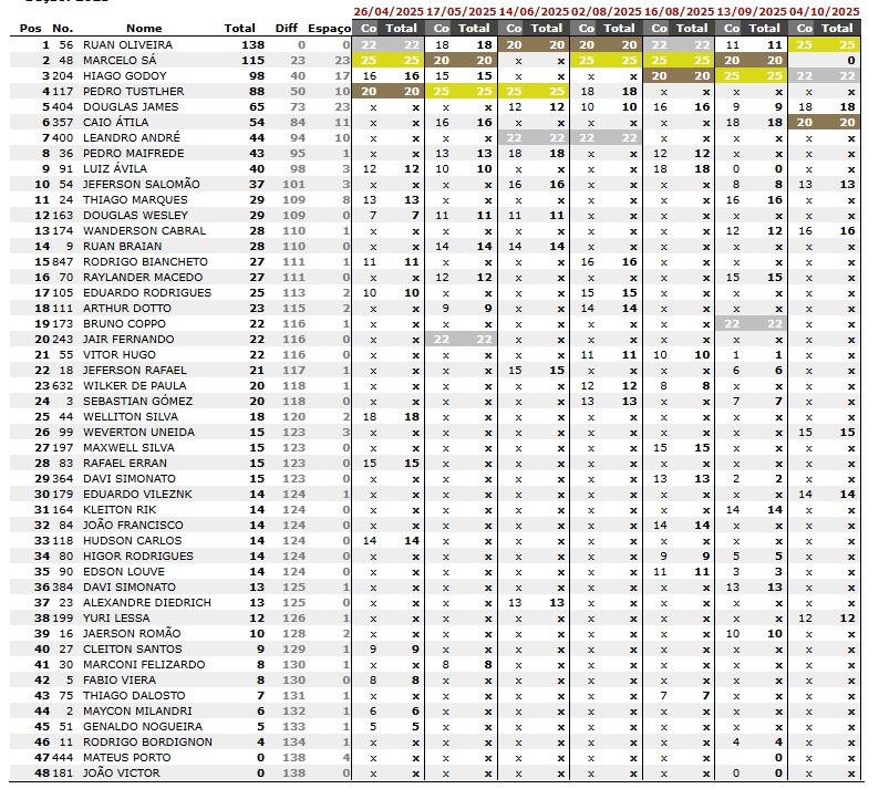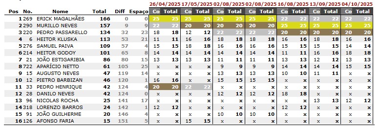 Veja abaixo os resultados da etapa por categorias: