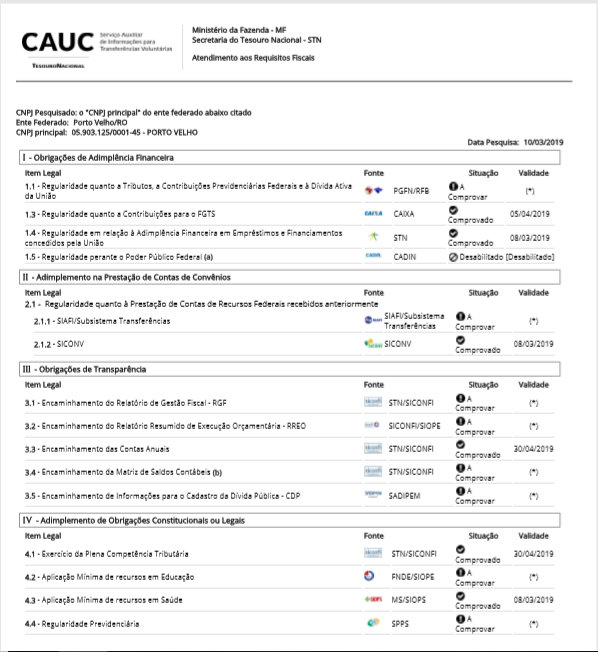 Outros órgãos municipais que tem seu CNPJ vinculado a administração municipal, também estão na condição de inadimplente. Entre elas Câmara Municipal de Porto Velho, Secretaria Municipal de Educação, Defesa Civil, Ipam, Conselho Municipal da Criança e Adolescente entre outros.