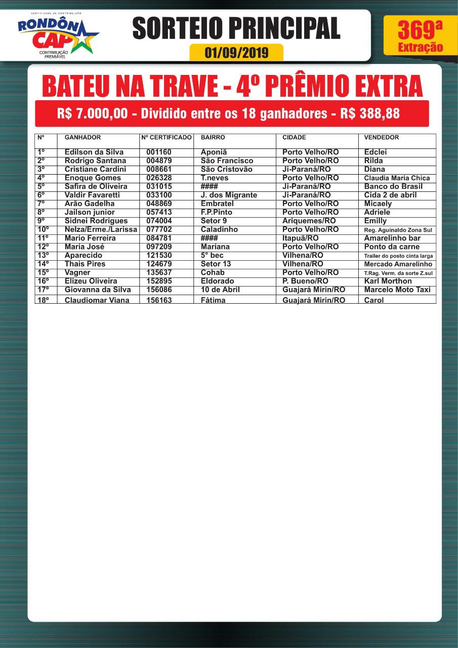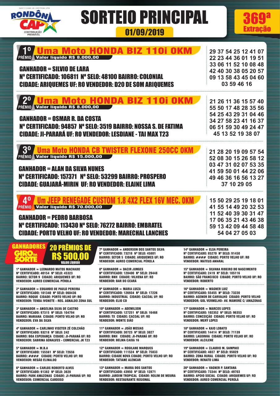 Os prêmios saíram para as cidades de Ariquemes, Guajará Mirim, Ji Paraná, Porto Velho, Vilhena, Cacoal, Rolim de Moura, Itapuã do Oeste e Pimenta Bueno.