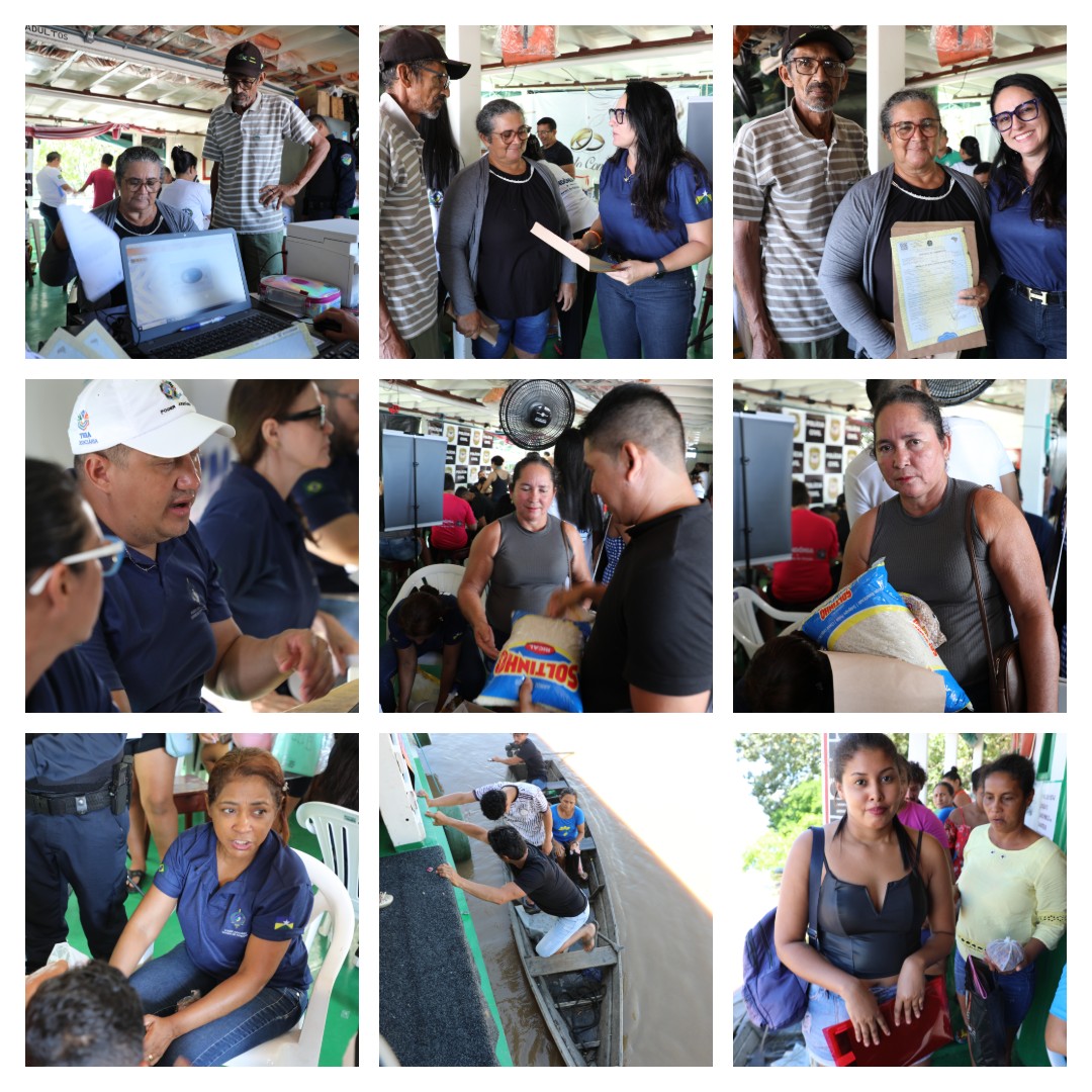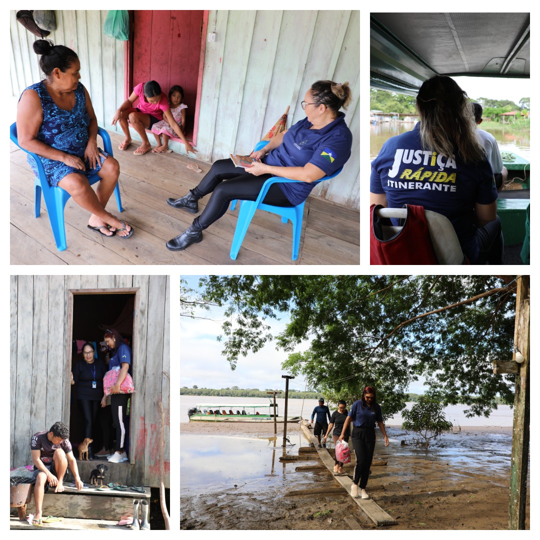 A equipe psicossocial aproveitou para fazer algumas visitas. De voadeira, foram até as casas dos ribeirinhos divulgar programas do Tribunal de Justiça, direitos e fazer acolhimento de situações geradas pela enchente.