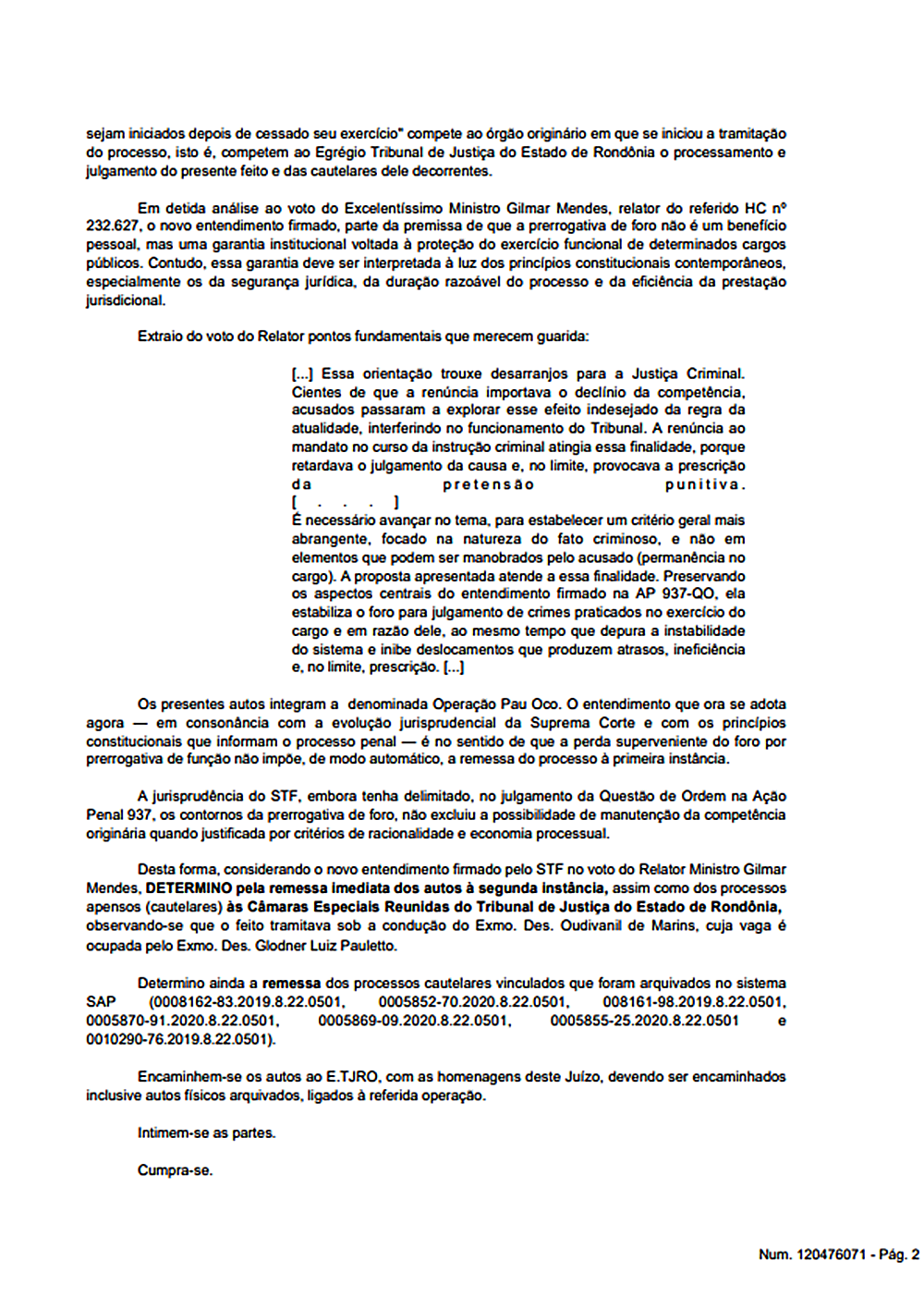 A chamada Operação Pau Oco, deflagrada em junho de 2018 para, em tese, desvendar delitos que beneficiariam a madeireira Aléssio e que teriam como autores servidores comissionados nomeados pelo então governador Daniel Pereira, ganhou um novo e potencialmente explosivo capítulo. A juíza da Primeira Vara Criminal de Porto Velho determinou a remessa das duas ações penais decorrentes da operação para o Tribunal de Justiça de Rondônia (TJ/RO). A decisão não é mera formalidade: ela reacende questionamentos cruciais sobre a legalidade da investigação e pode ter desdobramentos significativos.