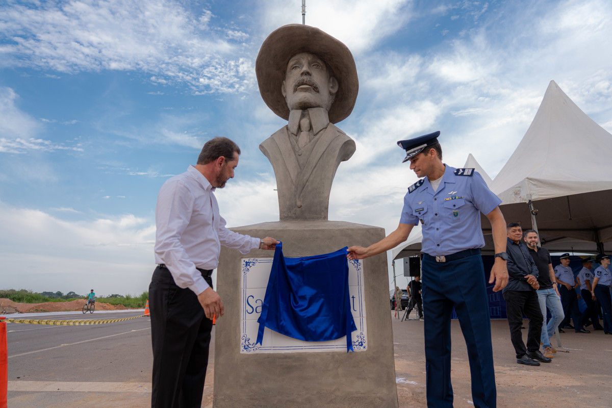 Solenidade de inauguração do busto de Santos Dumont, no início da avenida que tem o mesmo nome