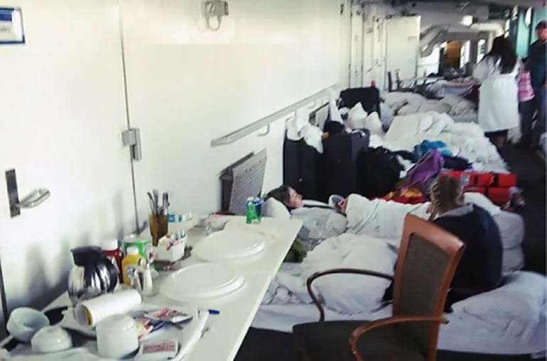 O resultado da falta de energia afetou o sistema de refrigeração - ar condicionados -, iluminação e, para piorar, até o sistema de esgoto de bordo também parou de funcionar, por conta dos vasos sanitários, cujo sistema de descarga era elétrico e foi desativado.