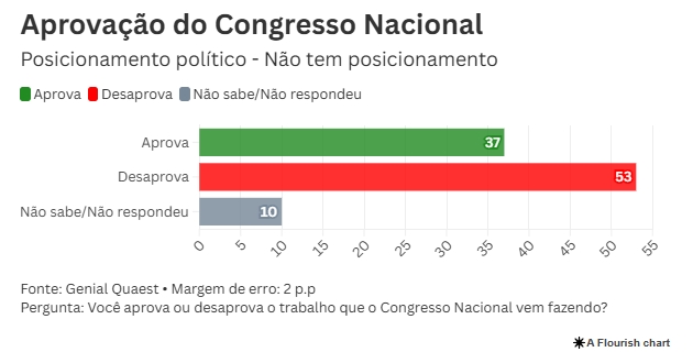 Foram consideradas 2.004 entrevistas, realizadas entre os dias 10 e 14 de julho. A margem de erro é de dois pontos percentuais para mais ou para menos e o nível de confiança é de 95%