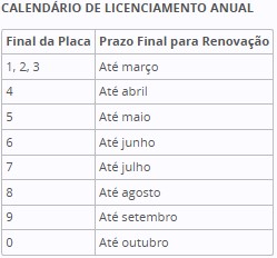 Conforme a Lei Complementar nº 369, de 22 de fevereiro de 2007, o último número da placa do veículo está ligado ao mês obrigatório que o proprietário deve seguir para pagar o licenciamento e manter o documento do automóvel em dia.