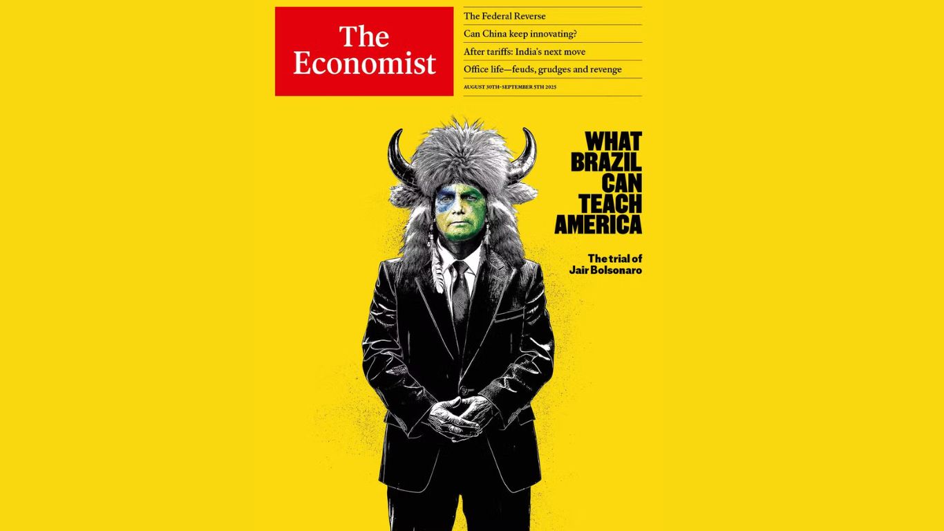 A última capa da revista inglesa ‘The Economist’, considerada a bíblia do liberalismo mundial tem o Brasil como personagem principal. Para ser mais específico, o ex-presidente Jair Bolsonaro que está sendo julgado no Superior Tribunal Federal pelos atos golpistas de 8 de janeiro de 2023. A capa mostra Bolsonaro vestido com os mesmos trajes de um dos invasores do Capitólio, que é a sede do Poder Legislativo norte-americano e que também foi alvo de vândalos em 6 de janeiro de 2021, insatisfeitos com a derrota de Donald Trump para Joe Biden. O texto elogia o Brasil, afirmando que é uma lição para os Estados Unidos que está se transformando na mais corrupta, protecionista e autoritária nação. Diz ainda que somente instituições fortes são capazes de conter ameaças autoritárias e preservar a democracia, se referindo ao Supremo Tribunal Federal. A revista inglesa, super de direita, mostrou para muitos brasileiros que a Justiça deve alcançar a todos e que ninguém pode ficar acima da lei. Você pode até discordar, mas não pode negar que nesse caso, o processo está sendo conduzido de forma justa e transparente. É até televisionado e os réus promovem, inclusive, manifestações públicas sem serem torturados em pau de arara, com ocorria nos anos de ditadura militar. Ou seja, o mimimi não cola!