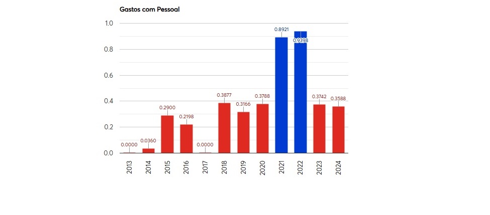 As cidades destinam, em média, 46% da receita para essa despesa. Em período de baixa arrecadação, esse percentual alcançou 56,1%. Porém, mesmo com cenário mais favorável, 540 prefeituras comprometem mais de 54% do orçamento com gastos com pessoal. Entre elas, 131 destinam mais de 60% para essa finalidade e ultrapassam o limite máximo estipulado pela Lei de Responsabilidade Fiscal (LRF).
