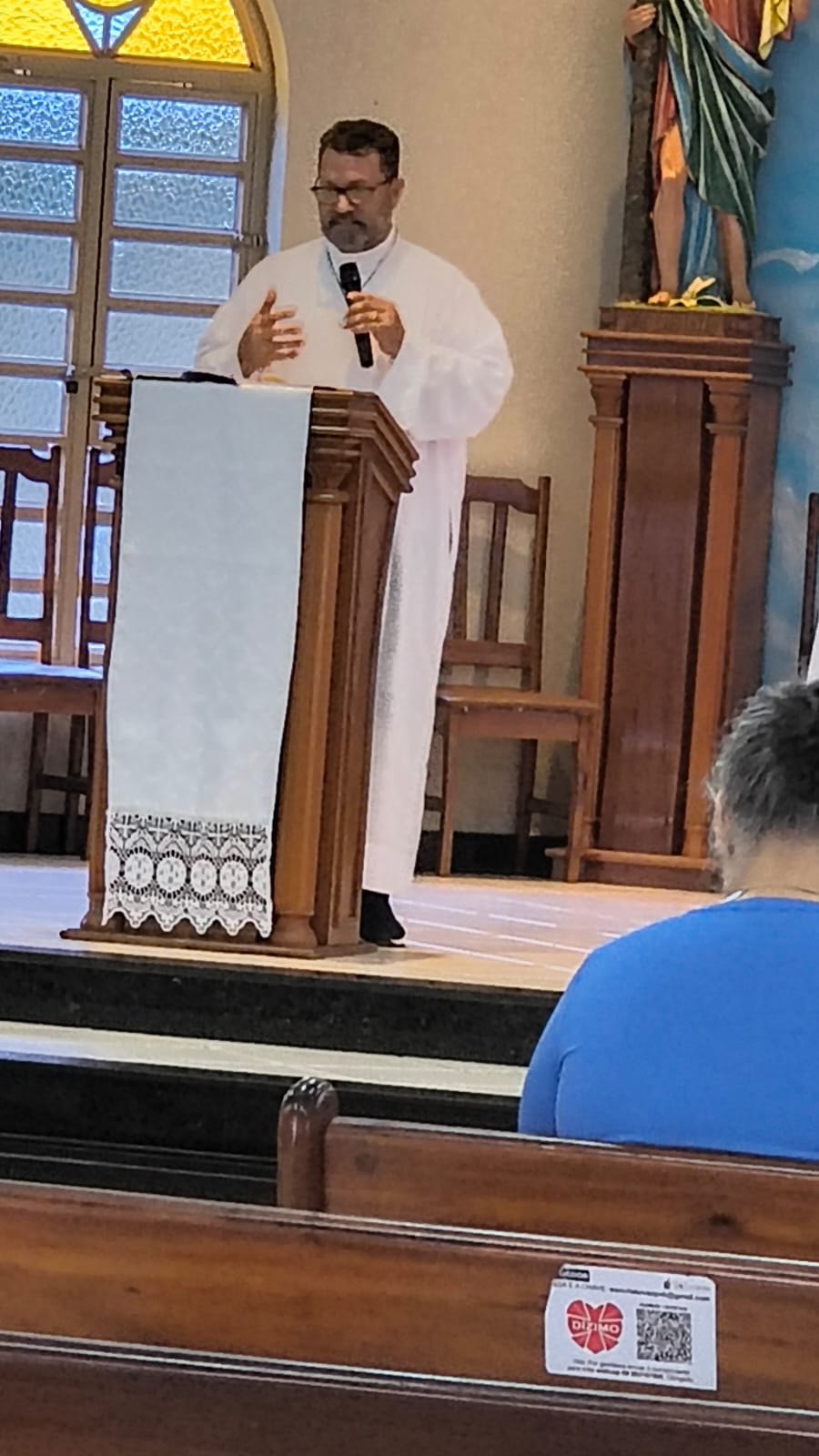 Apesar de nessa etapa ele ainda não poder exercer plenamente o diaconato, em razão dos dois padres da paróquia de São Cristóvão estarem ausentes, Paolo presidiu os cultos de quarta-feira e ontem.