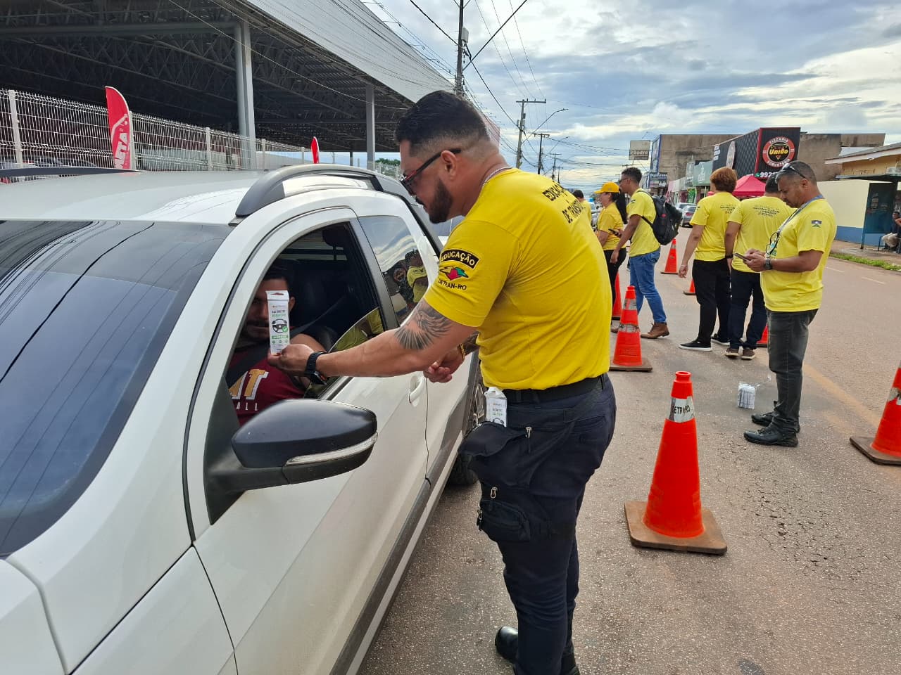 O Departamento Estadual de Trânsito de Rondônia (Detran-RO), por meio da Escola Pública de Trânsito, realizou na segunda-feira (22) uma Mobilização Educativa “Pit Stop” em pontos estratégicos de Porto Velho com altos índices de sinistros de trânsito. A ação contou com parceria da Fundação de Hematologia e Hemoterapia de Rondônia (Fhemeron) e integrou a campanha “Calma Vai de Boa”, que neste mês trabalha o tema “Hora de acalmar e refletir”.