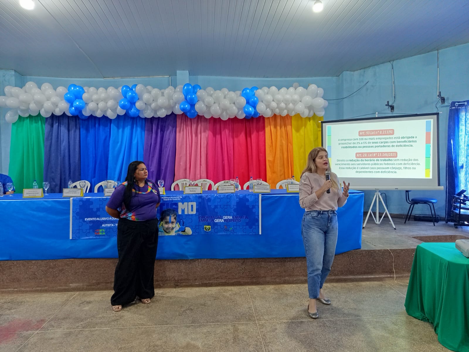 A programação contou com a presença do Deputado Estadual Lucas Torres, da Presidente e diretora da Associação do Amigo e pais do Autista de Rodônia -AMA, Nilza Maria e Alessandra Gomes, presidente da Câmara Municipal, Vânia Alves e Presidente da Associação das Mães Atípicas de Itapuã do Oeste-AMAIO, Natália Dutra.