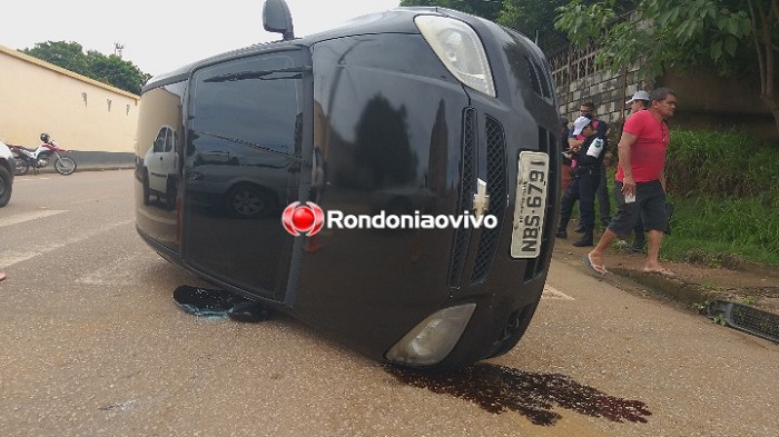 Um grave acidente com capotamento registrado na manhã deste sábado (05) deixou uma mulher ferida no cruzamento da Avenida 7 de Setembro com Rua Buenos Aires, bairro Nova Porto Velho, na capital.