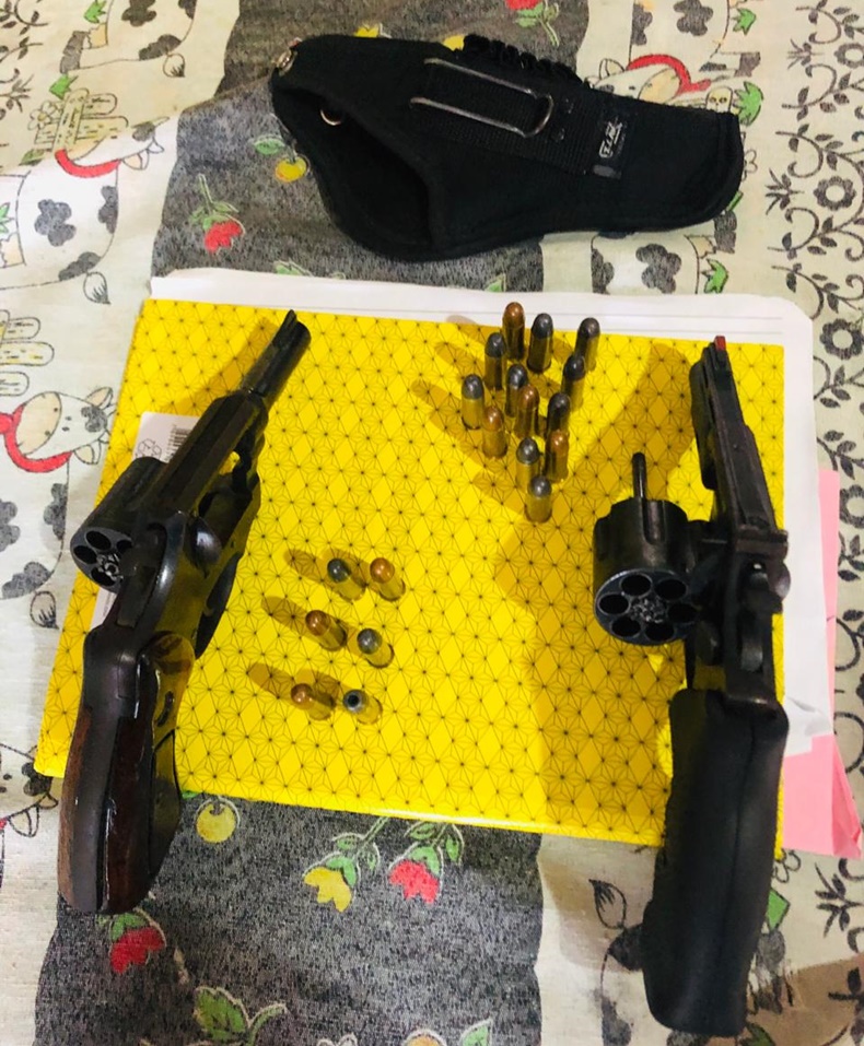 Durante a busca e apreensão, o investigado Melquisedeque F.S foi preso preventivamente em poder de duas armas de fogo calibre 38 e 18 municões, sendo armas utilizadas nos roubos investigados. Na residência ainda estava Jucenildo S.R (27 anos), que possui mandado de prisão por tráfico de drogas e estava com tornozeleira eletrônica rompida.