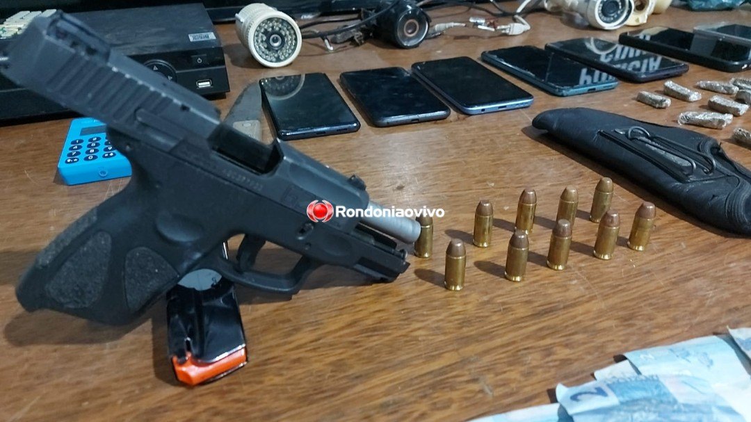 Os acusados foram flagrados com muita droga, uma pistola calibre .40, e outros materiais usados no tráfico. Os criminosos tinham até  pagamento por QR code via pix, exposto na parede para receber o dinheiro da venda de drogas.