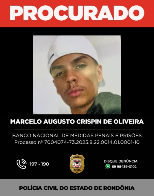 Informações de familiares indicam que o suspeito deixou Vilhena logo após o crime e pode estar escondido em fazendas da região. A Polícia Civil divulga imagens do foragido e pede o apoio da população. As denúncias podem ser anônimas através dos seguintes canais: