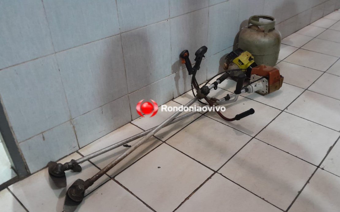 Os policiais abordaram o acusado na frutaria onde ele estava com 50 munições de pistola calibre 9mm, uma algema, uma moto adulterada, um  alicate de cortar cadeados e outros objetos que teriam sido furtados de residências no condomínio Tropical, sendo que o último crime aconteceu na data de hoje na casa de uma mulher.