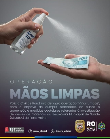 A operação recebeu o nome 'Mãos Limpas' em alusão à apreensão de álcool 70º, material comumente usado para higienização de superfícies e das mãos, simbolizando o compromisso da Polícia Civil de Rondônia com a lisura e integridade na administração pública.