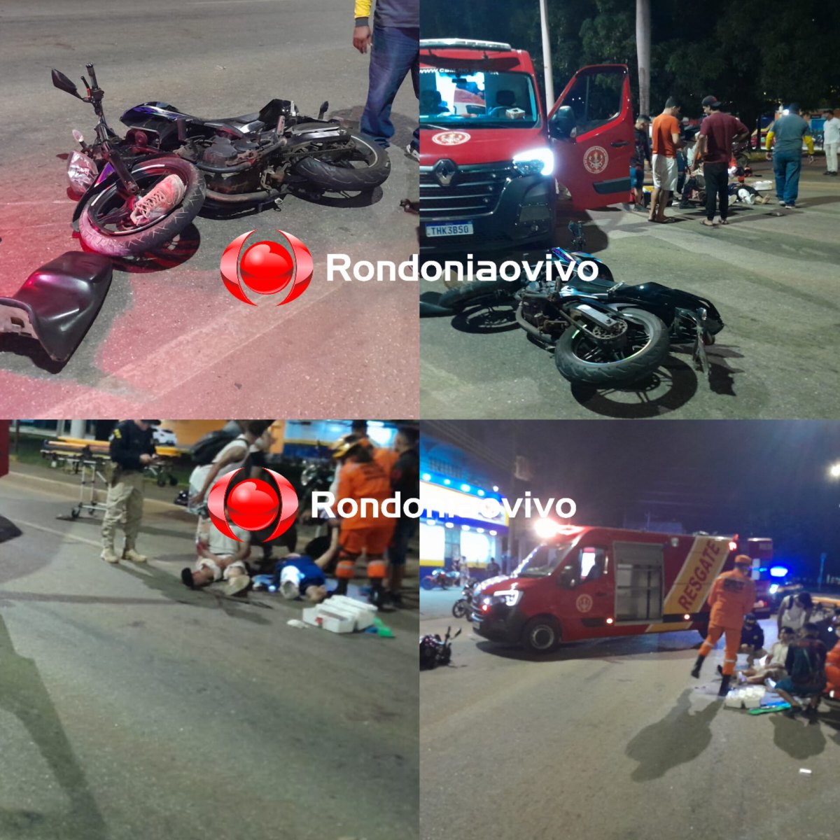 Dois motociclistas ficaram gravemente feridos após acidente ocorrido na madrugada deste domingo (19) na Avenida Jorge Teixeira com Raimundo Cantuária, em Porto Velho (RO).